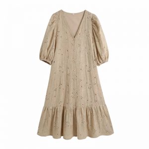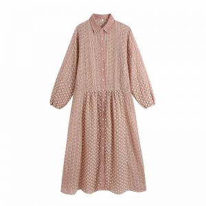 Women Geometric Embroidery Splicing Midi Shirt Dress Female Nine Quarter Sleeve Clothes Leisure Lady Loose Vestido D8032