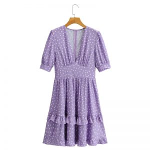 New Fashion Women Polka Dot Print V Neck Cascading Ruffle Mini Dress Female Short Sleeve Clothes Lady Loose Vestido D7185