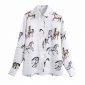 Women Horse Print Turndown Collar Satin Shirt Female Long Sleeve Blouse Casual Lady Loose Tops Blusas S8162