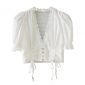 Summer Women Deep V Neck Drawstring Elastic Short Blouse Female Puff Sleeve Shirt Casual Lady Crop Tops Blusas S8768