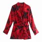 Women Floral Printing Tailored Collar Sashes Red Shirts Female Long Sleeve Blouses Casual Lady Loose Tops Blusas S8198