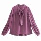 New Fashion Women V Neck Lace Up Bow Tie Chiffon Shirt Female Long Sleeve Blouse Lady Loose Tops Blusas S8579