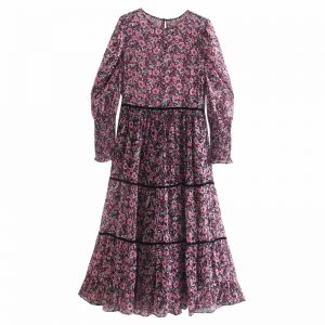 Women Floral Printing Chiffon Tiered Ruffle Midi Dress Female O Neck Puff Sleeve Loose Clothes Casual Lady Vestido D6695
