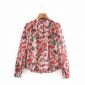 Hot Sale Women Placement Print Splicing Wrap Shirt Female Long Sleeve Blouse Casual Lady Loose Tops Blusas S9295
