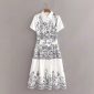 Women Floral Printing Chiffon Tiered Ruffle Midi Dress Female O Neck Puff Sleeve Loose Clothes Casual Lady Vestido D6695