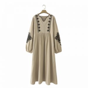 Hot Sale Women Ethnic Style Embroidery Midi Dress Female Lantern Sleeve Clothes Casual Lady Loose Vestido D8278