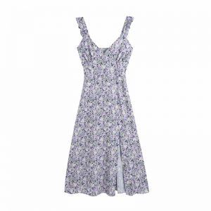 Summer Women Floral Printing Back Split Midi Skirt Casual Female Loose Clothes P2113