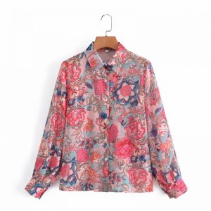 Hot Sale Lady Ethnic Style Flower Printing Chiffon Shirt Women Long Sleeve Blouse Casual Female Loose Tops Blusas S9316