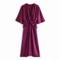 Hot Sale Women Cross V Neck Knot Decoration Side Slit Midi Dress Female Raglan Sleeve Clothes Casual Lady Loose Vestido D8353