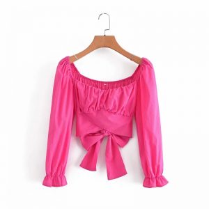 Summer Women Slash Neck Short Blouse Solid Smock Female Puff Sleeve Shirt Casual Lady Slim Crop Tops Blusas S8926