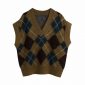 Women V Neck Rhomboid Pattern Knitting Sweater Female Sleeveless Pullover Casual Lady Loose Tops SW1021