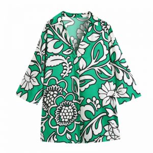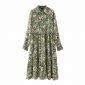 Autumn Women Green Leaf Printing Loose Midi Dress Female Turndown Collar Long Sleeve Clothes Casual Lady Vestido D6782