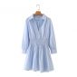 Women V Neck Elastic Waist Blue Mini Dress Female Nine Quarter Sleeve Clothes Casual Lady Loose Vestido D7508