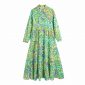 Hot Sale Women Green Floral Print Sashes Midi Shirt Dress Female Three Quarter Sleeve Clothes Leisure Lady Loose Vestido D8022