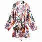 Spring Women Flower Print Ruffle Splicing Mini Dress Female Three Quarter Sleeve Clothes Casual Lady Loose Vestido D7505