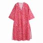 Hot Sale Women Geometric Print V Neck Red Mini Dress Female Nine Quarter Sleeve Clothes Casual Lady Loose Vestido D8208