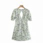 Summer Women Floral Print V Neck Mini Pencil Dress Female Puff Sleeve Clothes Leisure Lady Slim Vestido D7893